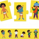 Djeco Dressing Puzzle is the perfect choice for developing children's creativity and logical thinking. Each piece represents a specific phase of dressing, helping children understand the sequence of activities: