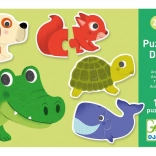 Discover a playful and educational puzzle for little ones from DJeco. The set includes 10 two-piece puzzles with adorable animals that develop fine motor skills, logical thinking, and visual perception. Large, sturdy pieces are easy for children to grasp, and the practical handle makes the box easy to carry.