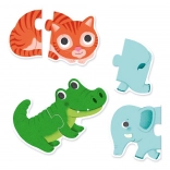 Djeco Animals Puzzle 10x2 pieces is an ideal first puzzle for children aged 2 and up. Each animal consists of two large pieces that are clear, colorful, and easy to connect. Children naturally practice hand–eye coordination and learn to recognize different animals.