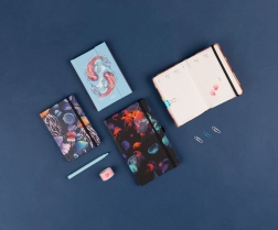 Thanks to the compact 13 × 21 cm size, the notebook fits easily into a handbag or backpack. The inner pocket keeps business cards or small papers, while the ribbon bookmark helps you instantly find pages in progress. Ruled paper provides a clear structure for clean and legible notes.