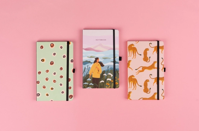Designer covers with a landscape motif add flair to your notes, while the sturdy binding and elastic band reliably protect the contents during everyday carry.