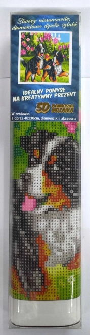 Diamond painting is a great way to unwind while creating a unique decoration. Using the applicator pen, you place small rhinestones onto a pre-printed canvas with symbols—the process is simple, fun, and suitable for all ages. The finished picture of playful puppies will become a beautiful interior accent.