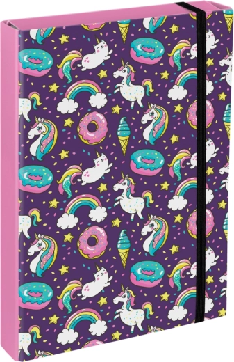 Practical and stylish BAAGL folders for A4 format reliably protect school exercise books and documents. Thanks to the top and bottom flaps and a sturdy elastic band, everything stays safely in place. An ideal choice for everyday use with a popular unicorn motif and an extra spacious Jumbo design.