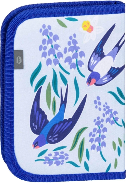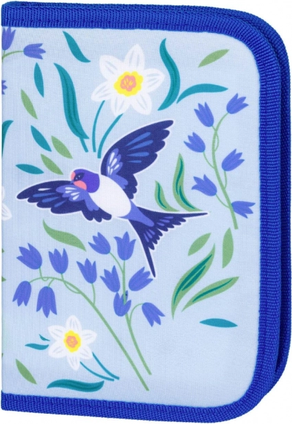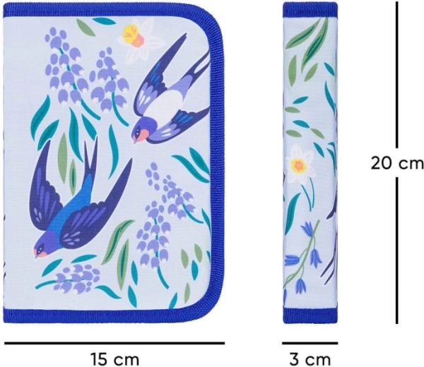 Elegant pencil case with a swallows motif in shades of blue and white catches the eye at first glance and perfectly complements school supplies. Thanks to the two practical flaps, it keeps everything in its place and perfectly organized.
