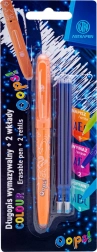 The practical ASTRA OOPS! erasable pen with a fine 0.6 mm line width is ideal for school and office. It contains special ink that can be easily erased from both ends of the pen, and its ergonomic grip offers comfortable, fatigue-free writing. The package includes 2 replacement refills for longer use.