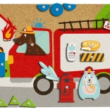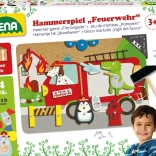 This fun hammering game from Lena offers endless hours of creative fun. With a hammer, colorful pieces, and a cork board, you can create various firefighter scenarios.
