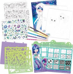 Nebulous Stars creative sketchbook Nenuphia is ideal for young artists who love imagination and color. It includes 35 pages for creation, more than 250 stickers, 80 stencils, 3 texture sheets, 5 double-ended colored pencils, and 8 drawing technique samples. With color theory and the story of the character Nenuphia, it develops creativity, fine motor skills, and imagination.