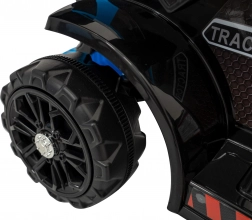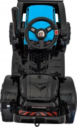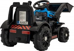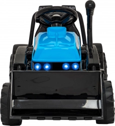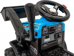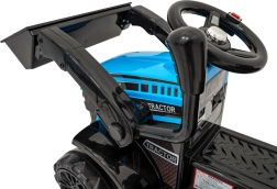 A stylish kids’ tractor with a front loading bucket for fun rides and construction play. Features LED lights, melodies and horn on the steering wheel, a 25 W drive, and rubber tire treads for better traction. Ideal for little drivers who want their own adventure.