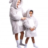 The warm hoodie blanket with a hood for kids combines functionality and fun. Children will feel comfortable whether they are at home on the couch, watching TV, or playing. The large hood with an animal motif and spacious front pocket provide extra warmth and comfort.