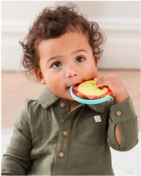 Soft, textured silicone pleasantly massages gums and helps during the eruption of first teeth.