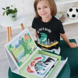 This thoughtfully designed magnetic board in the form of a foldable case will delight every young dinosaur fan. Following the cards, children assemble individual species while practicing precision, patience, and planning. Thanks to its compact size, it’s perfect for home and travel—it will reliably keep kids entertained during long car rides.