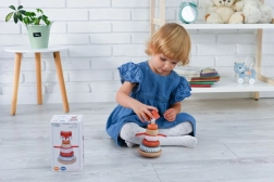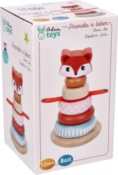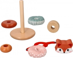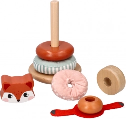 Stacking Tower with Fox Motif is the ideal toy for young children eager to explore their senses. Each piece of the toy offers different textures, from smooth wood to soft fabrics, aimed at developing sensory integration. Bright colors and patterns help with growing visual perception, while stacking and manipulating the pieces strengthen fine and gross motor skills.