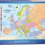 Discover the beauty of the old continent with the detailed EUROGRAPHICS Map of Europe puzzle with 1000 pieces. Ideal for lovers of puzzles, geography, and cartography. The map is color-coded by countries, includes capital and major cities, and labels of seas and oceans. A special non-conventional die-cut with curved edges and unusual piece shapes brings higher difficulty and a fun challenge. The text on the puzzle is in English.