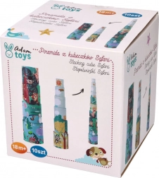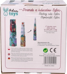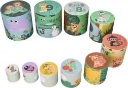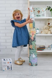 The Pyramid of Cups Safari offers fun for children while simultaneously developing their skills. The set includes cups of various sizes that can be stacked up to a height of 96 cm. Each cup is decorated with vivid animal illustrations that stimulate children's imagination.
