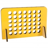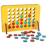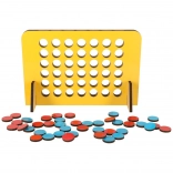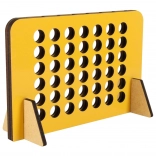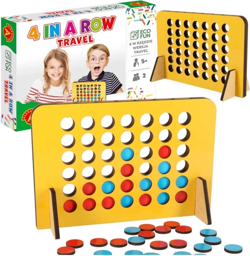 Play the popular game Four in a Row, now in a travel version, and enjoy fun anytime, anywhere. The game's goal is to connect four tokens of the same color in a horizontal, vertical, or diagonal line. The wooden board with holes allows easy token insertion.