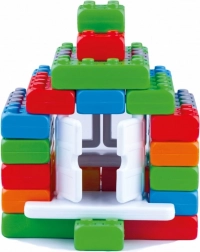 A fun construction set for children featuring 40 sturdy brick-shaped pieces, including elements like windows and doors. Ideal for developing creativity, fine motor skills, and spatial awareness. Practical bag packaging allows easy storage. 40 pieces, windows and doors, supports creativity, easy storage.