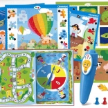 The My Interactive Pen educational game by Clementoni is designed to develop skills and perception of the surrounding world in children aged 3-6. It offers over 1000 quizzes and 120 educational activities, covering a wide range of topics for preschoolers.