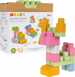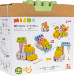 A set of construction blocks for the youngest from an eco-friendly series designed to promote the use of less plastic. The blocks are made of 25% biocomposite from rice husk waste. They have rounded edges, various shapes, and pastel colors. The set, consisting of 30 pieces, enables various constructions, positively influencing the child's development, enhancing spatial and motor skills, and fostering creativity.
