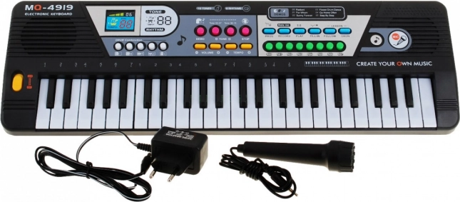 - 49 keys (29 white + 20 black) for comfortable playing