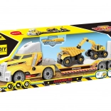 Large screw-together tractor truck, 62 cm long with freewheel, carries two construction machines – a dump truck and an excavator – and a handy Phillips screwdriver with a wrench in the handle. Kids will enjoy assembling and playing thanks to light and sound effects, easy ON/OFF control, and free-rolling wheels for smooth driving.