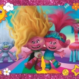 Discover fun with the heroes from the movie Trolls 3 and assemble a shimmering picture that will please every child. The puzzle is decorated with fine glitter, so it sparkles beautifully when finished and stands out in any child’s room.