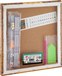 - Applicator pen, tray, wax, set of colored drills, printed canvas on frame
