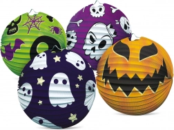 A stylish Halloween lantern in a ball shape with a diameter of 25 cm brightens up any party, garden celebration, or lantern parade. Thanks to its collapsible construction, it’s lightweight, easy to hang, and creates a spooky atmosphere in moments. Choose from 4 different Halloween designs featuring a pumpkin, ghost, skulls, and a spider. Ideal as a hanging decoration for interiors and covered outdoor events.