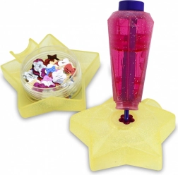 The star wand includes hundreds of shiny accessories that can be repeatedly used to decorate the plush toys.