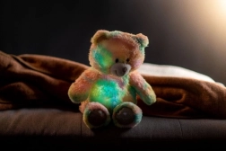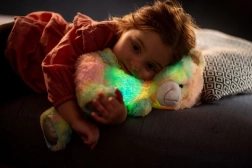 The bear is not only soft to the touch but also illuminates darkness with its changing colors, creating a magical atmosphere. Pressing the paw starts playing relaxing melodies that calm any child.