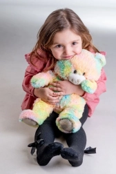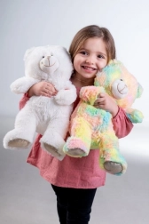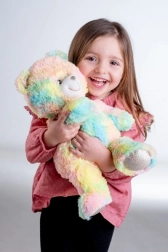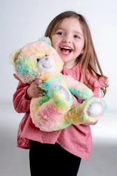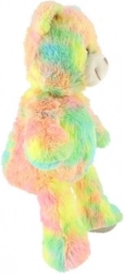 This stuffed animal featuring a rainbow fur captivates the eyes and impresses not only with its appearance but also with its softness to the touch.