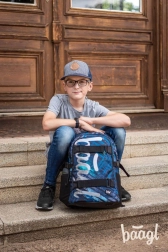Looking for a durable and comfortable school set in a unified design? BAAGL Skate Structures combines functionality, ergonomics, and an attractive look. The backpack has ergonomically shaped back padding, fully adjustable straps (shoulder, chest, and side), and thanks to reflective elements supports visibility at dusk. Front straps securely hold a skateboard, while the side elastic pockets fit a water bottle.