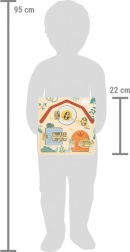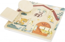 This high-quality wooden motor skills board in the shape of a little house offers a safe challenge for children aged 3 and up: open, close, and discover again. Different types of locks, latches, and buckles teach practical everyday skills, while the playful Safari animal design fosters curiosity and focus.