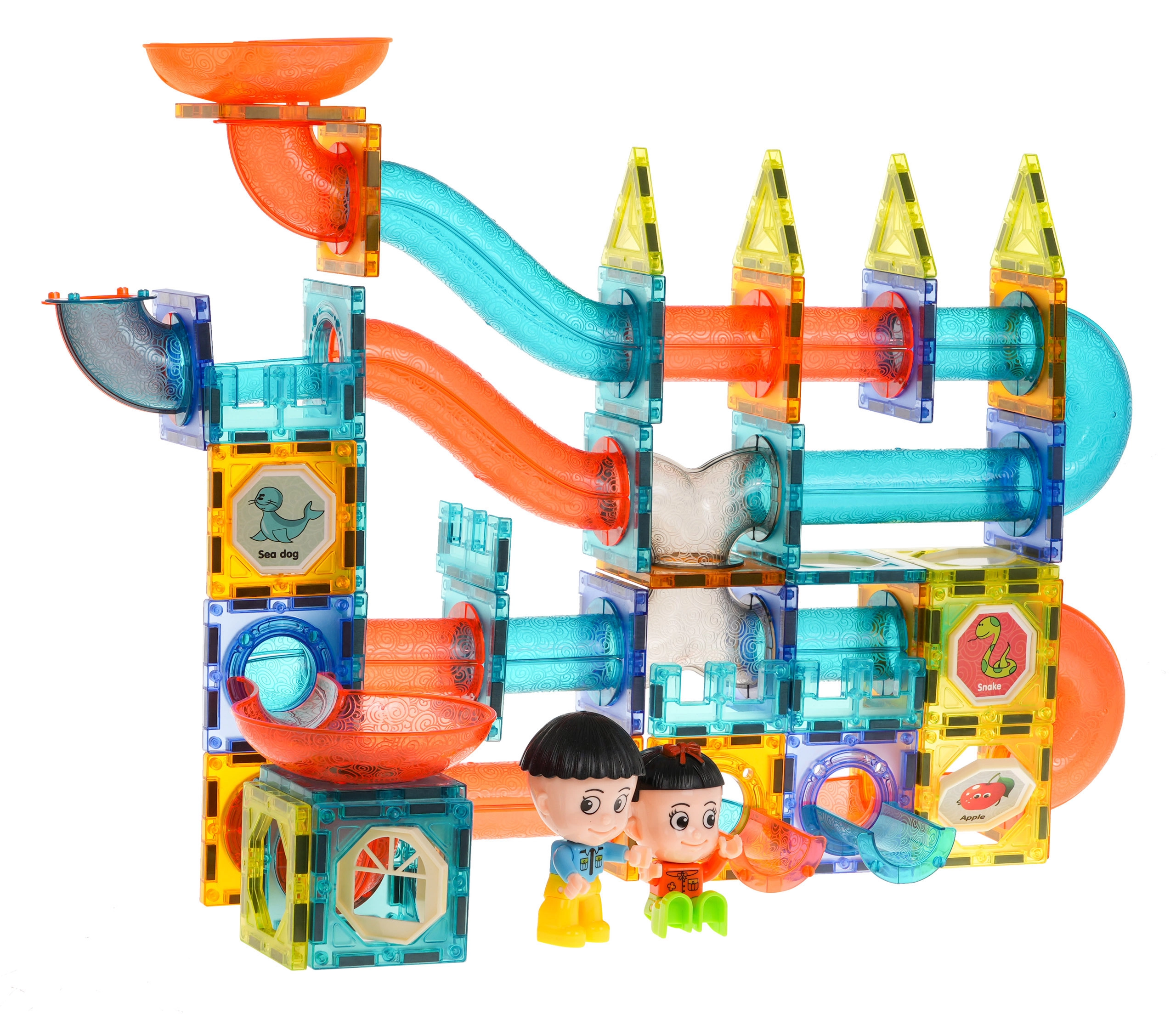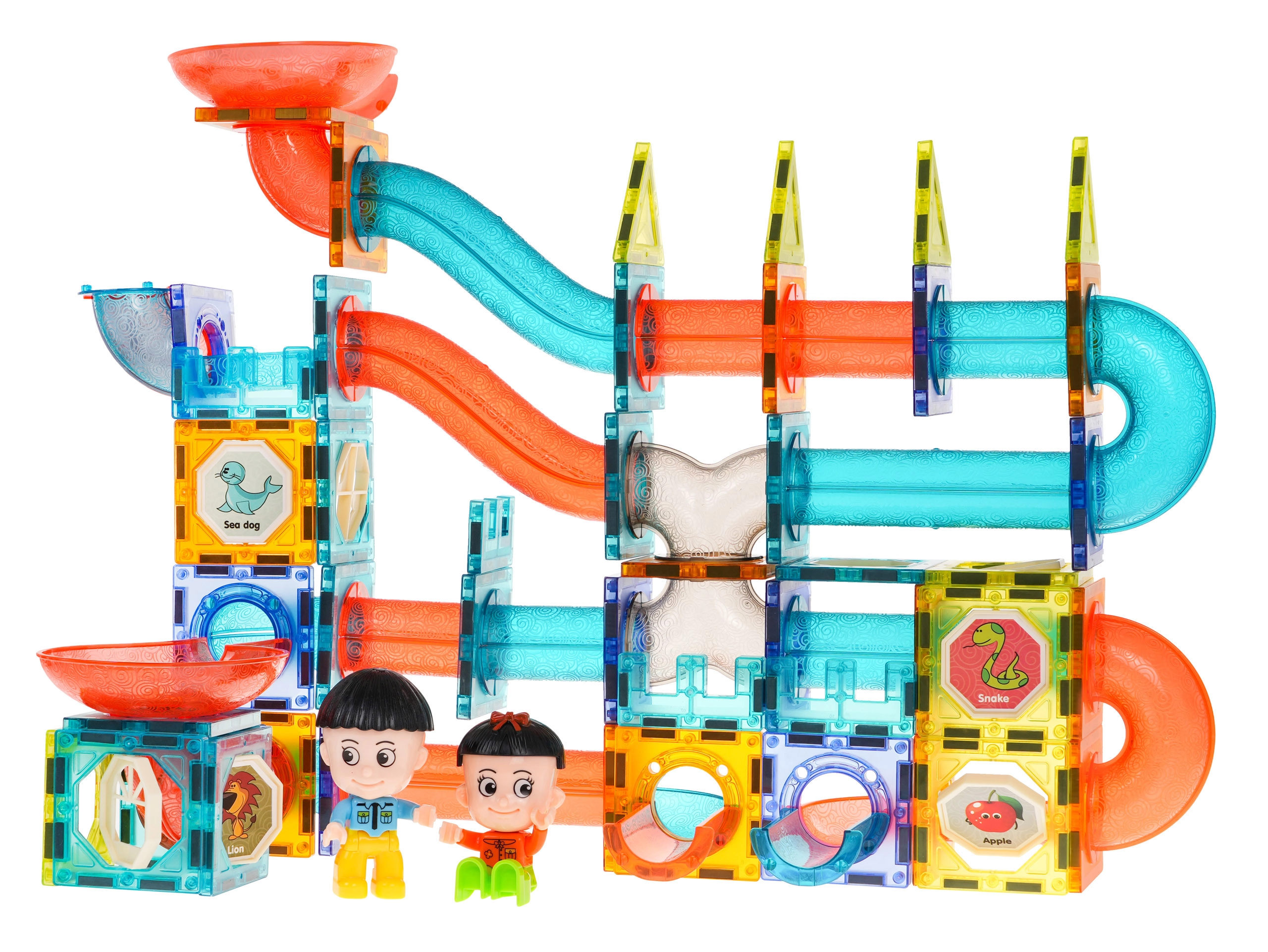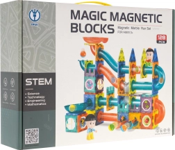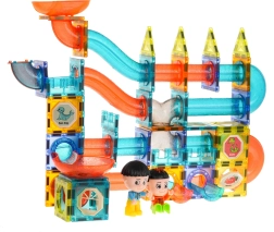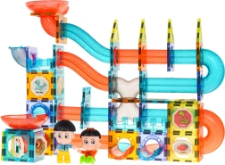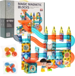 Discover a world of creativity with this colorful set containing 128 magnetic pieces. This kit allows you to build a marble run in any layout. The pieces are made of high-quality material, smooth, and carefully crafted. Thanks to the built-in magnets, they connect easily and ensure stable structures. The package includes a picture guide for assembling sample tracks.