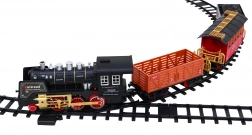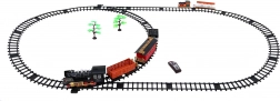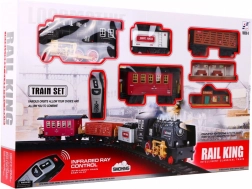 This classic steam train set on tracks will delight young and old train lovers alike. The locomotive starts smoothly at a command via the infrared controller, plays realistic driving and horn sounds, lights up, and produces an impressive smoke plume for an even more faithful railway-station atmosphere.