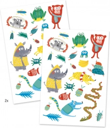 Express your imagination with colorful temporary tattoos from the French brand DJECO. The jungle animals collection brings cute designs perfect for children's parties, carnivals, and everyday fun. The tattoos are gentle on the skin and suitable for hands, face, and legs.