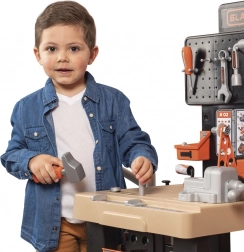 The kids’ mega workshop BLACK+DECKER 3‑in‑1 by Smoby fulfills every little maker’s dream. Children can playfully explore three professions — mechanic, painter, and plumber. The abundant equipment and realistic features extend playtime and develop creativity, patience, and focus.