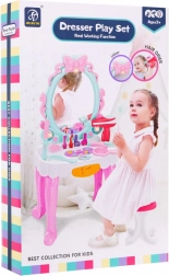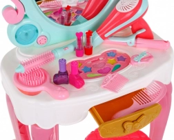 | Set contents | - vanity table with mirror, - stool, - 10 x eye shadows, - eye shadow brush, - hair dryer, - comb, - brush, - straightener, - curling iron, - 2 x hair clip, - 2 x lipstick, - 2 x hair spray. |