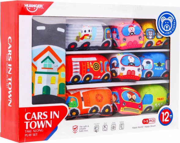 Discover fun for the little ones: a set of 9 soft fabric cars and a colorful playmat with roads and a town. The cars are safe, pleasant to the touch, and offer various sound effects – crinkling, jingling, and squeaking. Thanks to practical hook-and-loop straps, the mat easily transforms into a carry bag. The whole set is machine washable at a low temperature, so it’s always clean and ready to play.