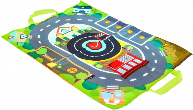 The mat with roads, houses, and nature folds into a practical bag with handles thanks to hook-and-loop fasteners. Easy to store and carry anywhere.