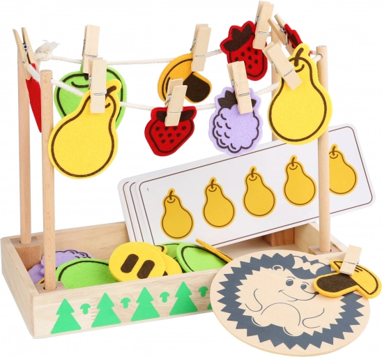 Incorporate this amazing Montessori educational toy into the children's room and watch as your kids discover the joy of drying fruits and vegetables with clothespins. This toy is designed to give children an unusual way of learning and playful discovery.