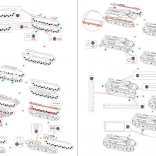 Assembly process with interlocking pieces that fit together without glue using tabs and holes. Perfect for modelers of all ages.