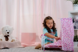 It includes a light duvet and a small pillow to keep the doll comfy while resting. The canopy adds a magical look and encourages imagination during family role-play.