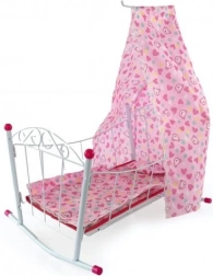 A cute metal cradle for dolls up to 38 cm turns a child’s room into a little care station. It offers a stable metal frame, a fabric cover with a canopy, and a set of soft bedding — a light duvet and a small pillow — for realistic pretend parenting and soothing doll rocking.
