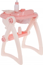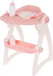 The high chair looks just like the real thing — with a comfortable seat, a tray, and a lower shelf for accessories. Ideal for pretend feeding and caring for dolls.