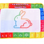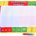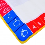 A fun and educational water drawing mat for children that uses only water – no mess or stains. Includes a magic water pen; drawings disappear on their own after drying and the mat can be used repeatedly. The colorful border with pictures, letters, and numbers supports learning and creativity, while the large 32 × 18 cm drawing area offers plenty of space for imagination.