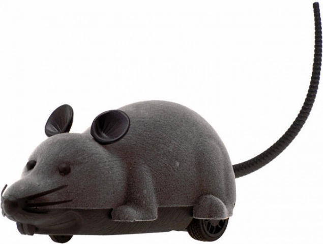The mouse’s body is covered with a material that faithfully imitates fur, making it look natural and inviting to play.