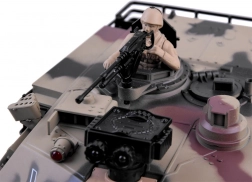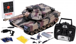 The admirably detailed model of the US M1A2 tank is perfect for all military technology enthusiasts. It comes with a rotating turret, adjustable barrel, and the capability to shoot plastic pellets up to a distance of 25 meters. Additionally, it offers shooting sound effects and authentic light effects.