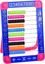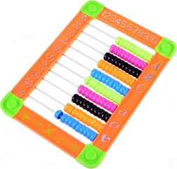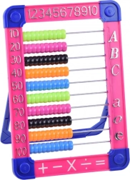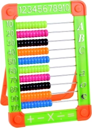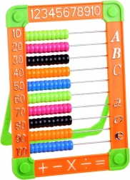 A practical plastic abacus with brightly colored beads is an ideal tool for children beginning with numbers, addition, and subtraction. The frame includes numbers and letters to support early introduction to both math and the alphabet. The folding stand ensures comfortable use on a desk and easy storage.