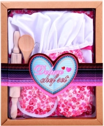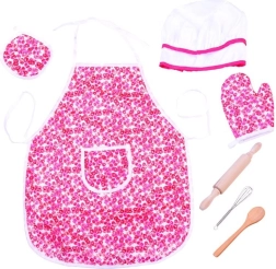 Prepare your children for exciting culinary adventures with this delightful cooking set. Every element is designed to promote creativity and teach basic skills. Apron and hat with a pink floral pattern not only protect clothing but also provide a cute look. The set includes the necessary tools for safe and fun play: