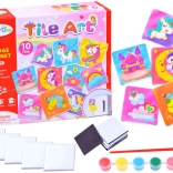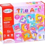 Children can create personalized magnets to decorate their room or fridge. The use of ceramic tiles and paints provides unlimited space for creativity.